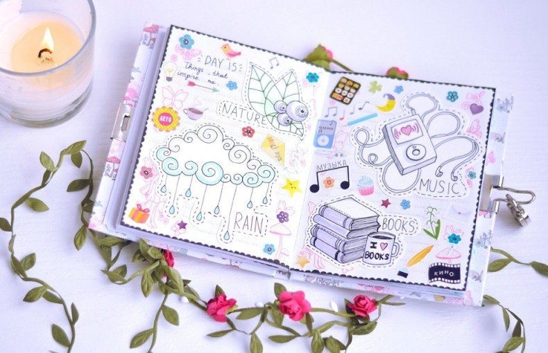Самое приятное в ведении личного дневника это то, что будет безумно приятно спустя несколько лет, а то и десятилетие открыть его и прочитать все мысли, разглядеть все изображения, рисунки, списки и прочие креативные элементы.