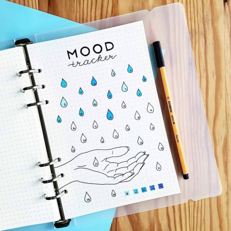 Трэкер делается в форме круговой диаграммы или таблицы с ячейками для каждого дня определенного месяца. Также можно написать список покупок на месяц и написать мотивационную фразу, оформив весь разворот в тематику месяца.