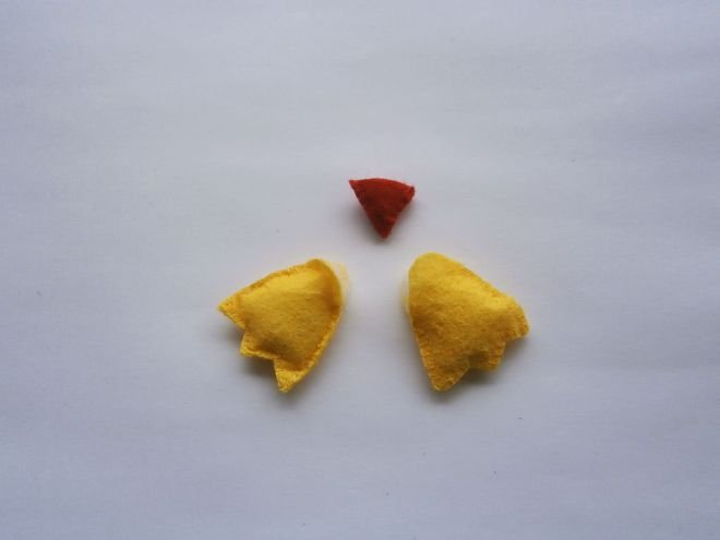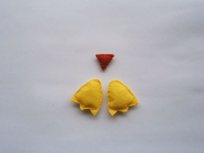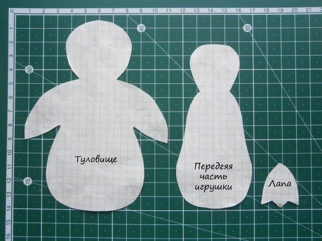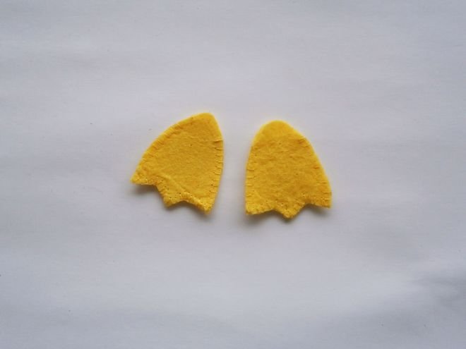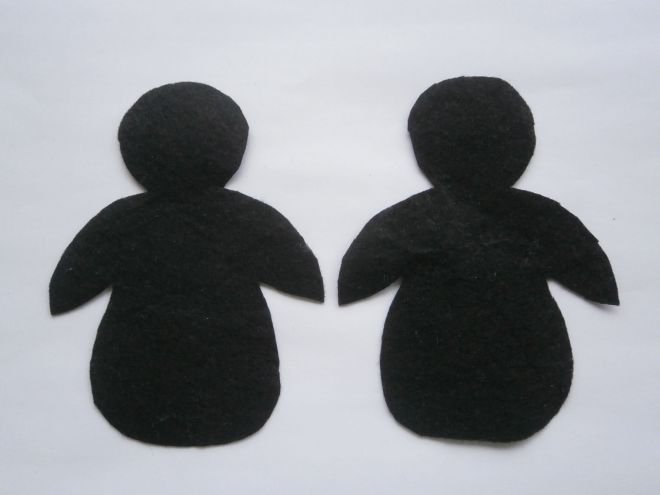 - Из фетра белого цвета изготавливаются две идентичные детали туловища игрушки, сшиваются между собой.