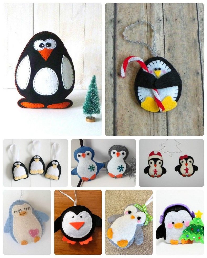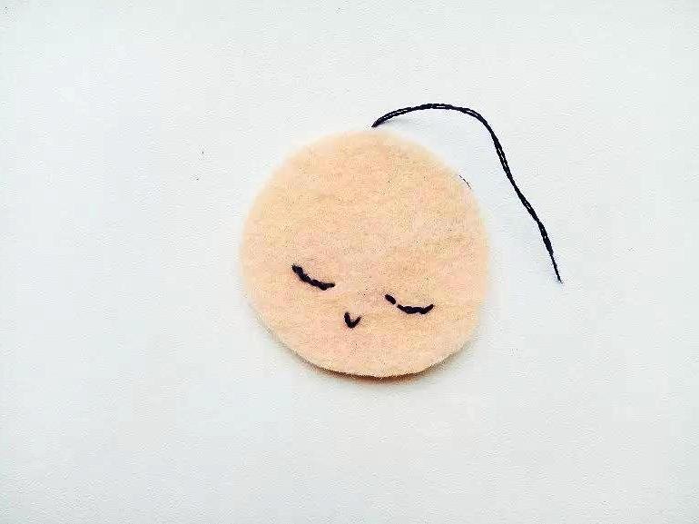 - Черными нитками вышиваются глазки животного, желтыми нитями пришивается носик, сделанный из оранжевого фетра. Щечки из розового фетра с помощью розовых ниток фиксируются по бокам. В результате получится очень милое личико пингвина.