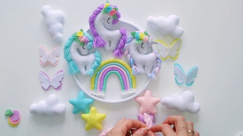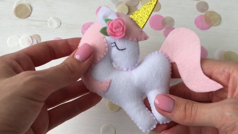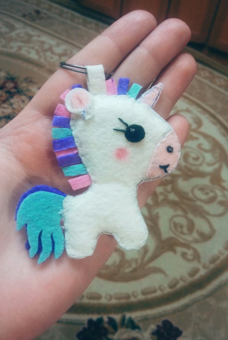 Игрушка «единорог» из цветного фетра готова!