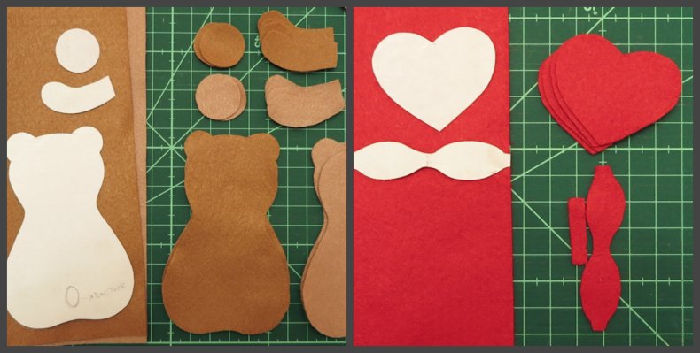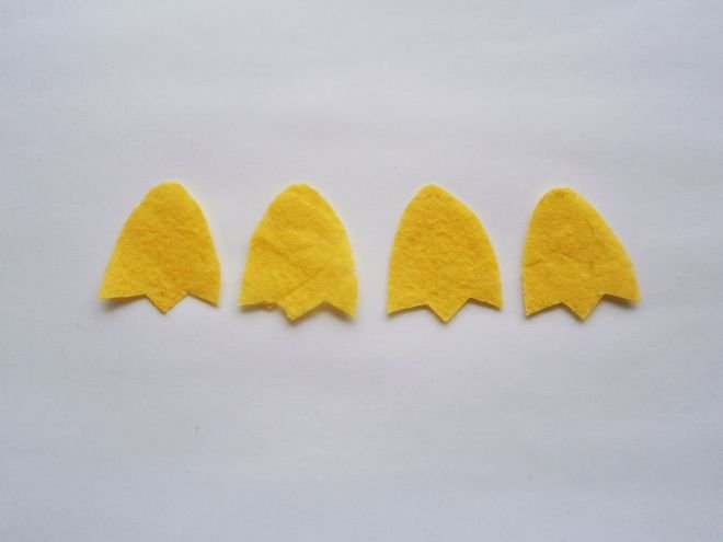 - Бумажные заготовки переносятся на фетр, закрепляются с помощью специализированных иголок и вырезаются острыми швейными ножницами.