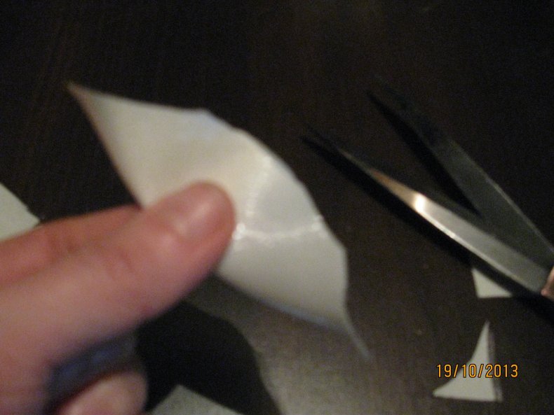 - Вырезать из картона шаблон шириной пять сантиметров, длиной десять сантиметров. С одной стороны картона вырезать зубцы, похожие на лепестки.