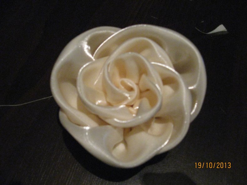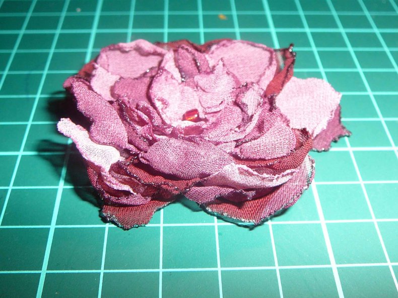 - Положить цветок, чтобы клей высох. После чего убрать булавки, обработать края лепестков и цветок готов.