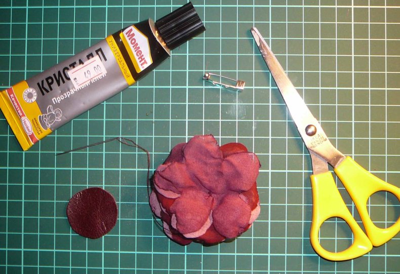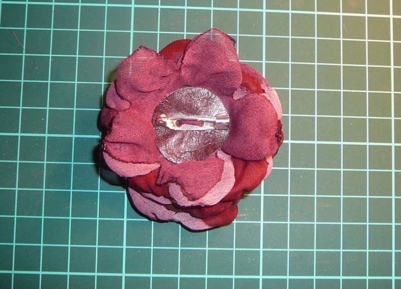 - С обратной стороны нужно сколоть цветок булавками, скрепить клеем.