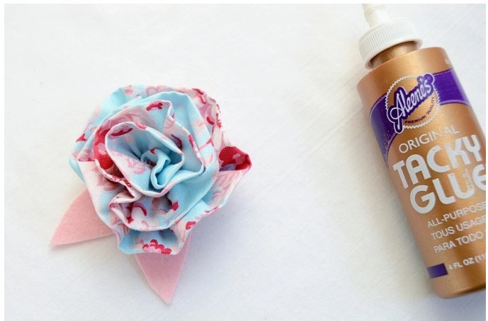 - К обратной стороне цветка приклеить кружок из ткани в качестве основания.