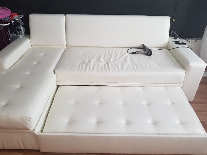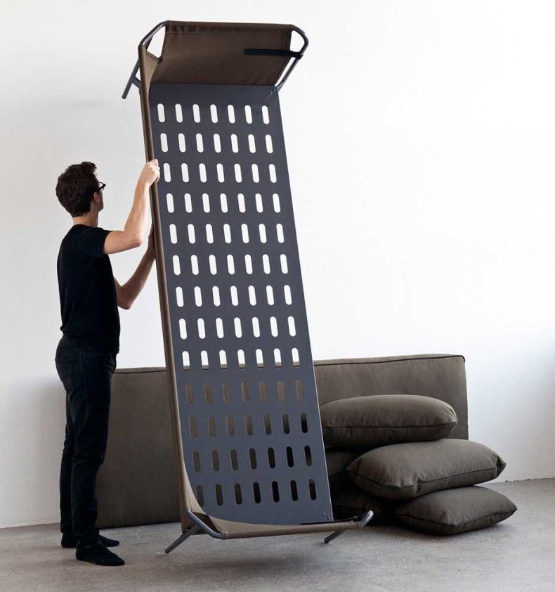 - По контуру панелей крепится ручка или шнур, который помогает выдвигать панель на основу дивана, тем самым переделывая его в кровать.