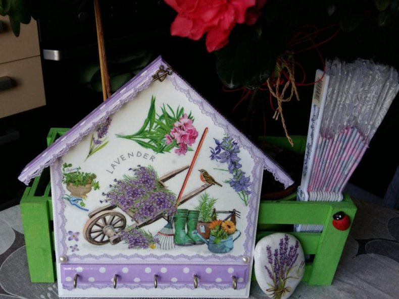Украшение ключницы с помощью декупажа