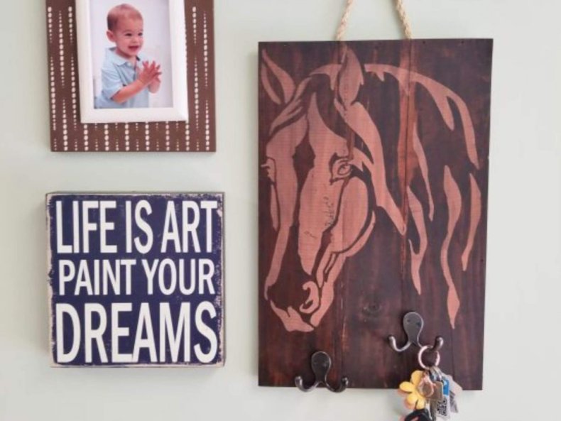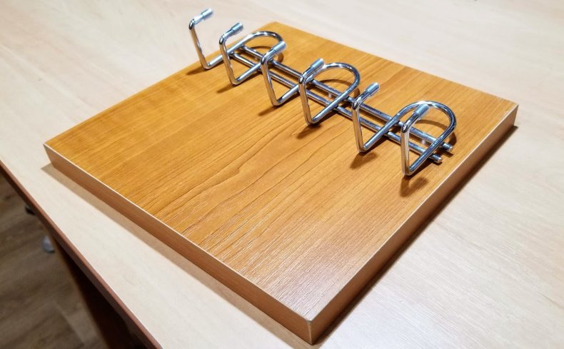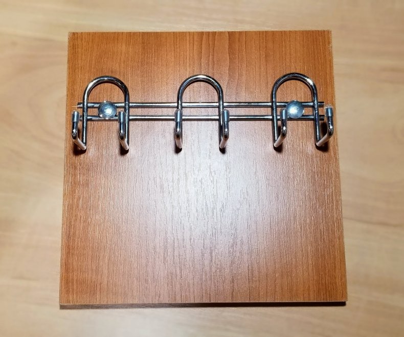 - Для изготовления нужна небольшая дощечка. Затем туда вкручивают несколько крючков.