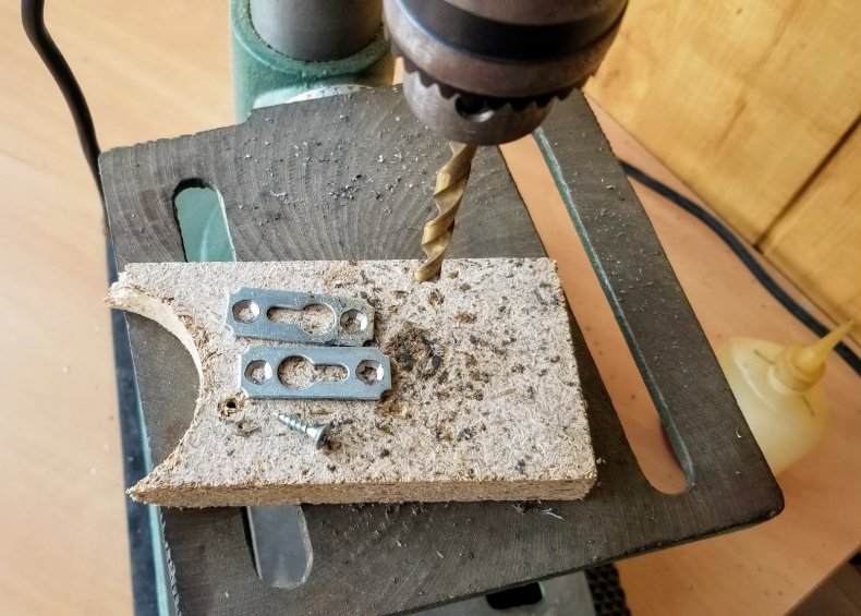- Потом в деревянном изделии необходимо высверлить необходимое количество дырок. Эти отверстия будут прикрепляться крючки. Размер отверстий должно быть меньше диаметра крючка.