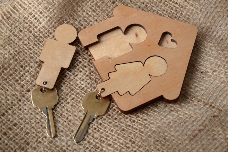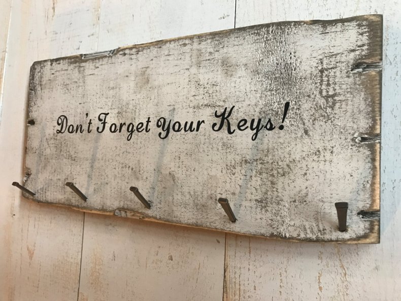 - Ключи втыкают в щель на деревянной доске.