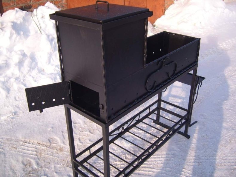 - Объёмная коптильня. Данный отсек должен быть герметичным и вместительным;