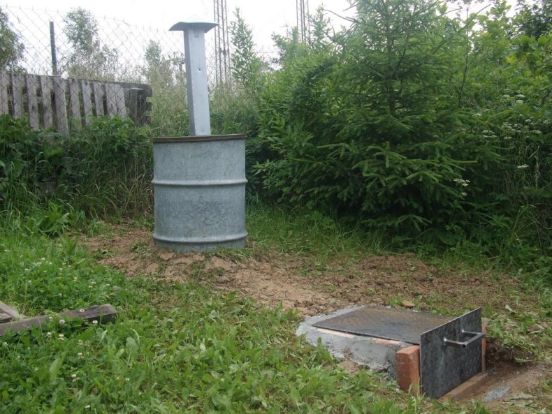 - Завершающим этапом будет сооружение крышки. Её можно изготовить из досок или воспользоваться железным листом, который зафиксируют на металлических петлях.