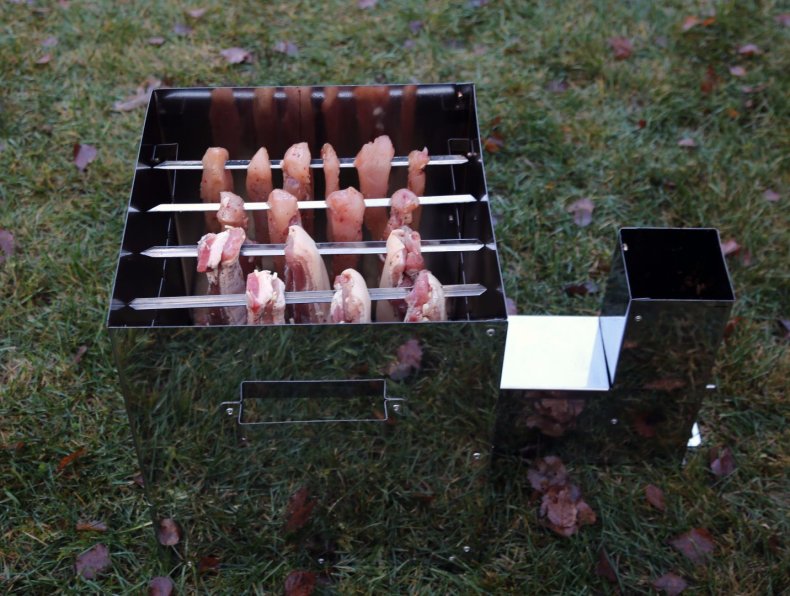 - Металлические решётки. Они предназначены для равномерного подвешивания продуктов для дальнейшей их обработки дымом;