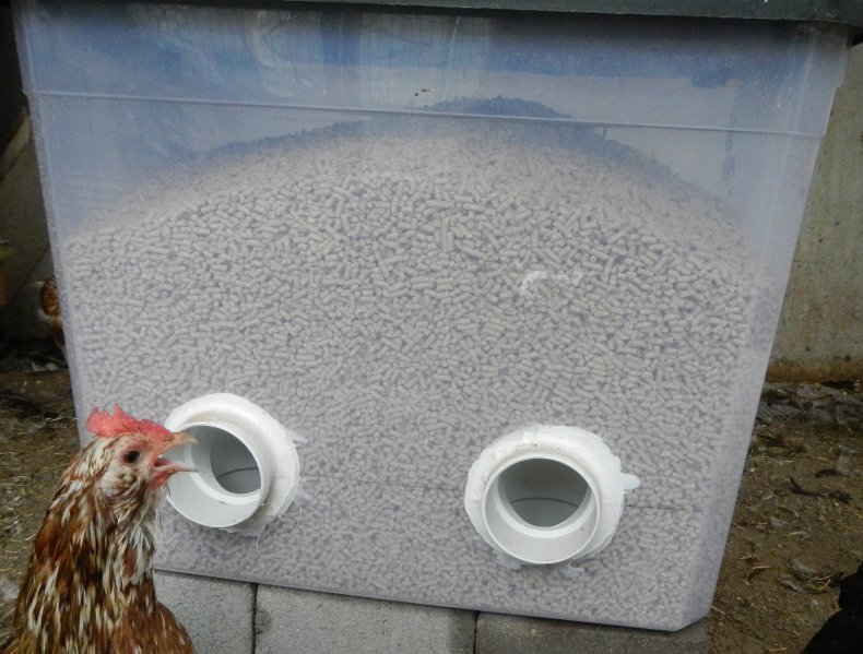 Место для кормления получается объёмным, вмещающим достаточное количество еды и удобным для доступа домашней птицы.