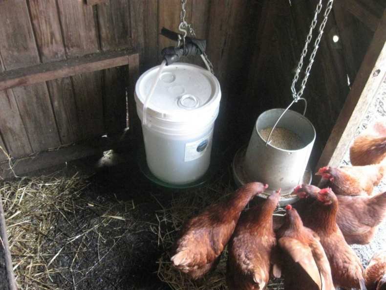 Высота подвешиваемого приспособления рассчитывается таким образом, чтобы достигать уровня спины куриц. При таком варианте пища склевывается и не разбрасывается по сторонам и на пол. К тому же подвесная конструкция не позволяет грызунам забраться в неё.