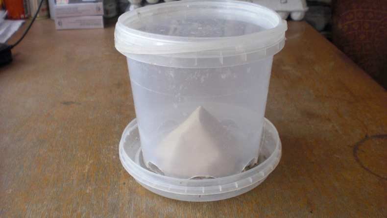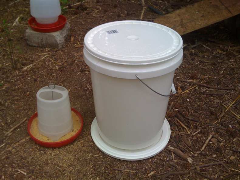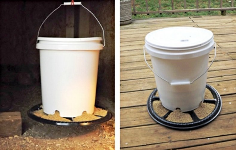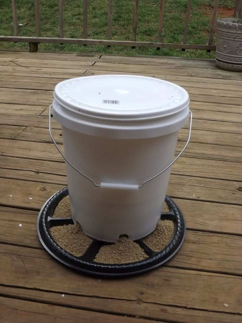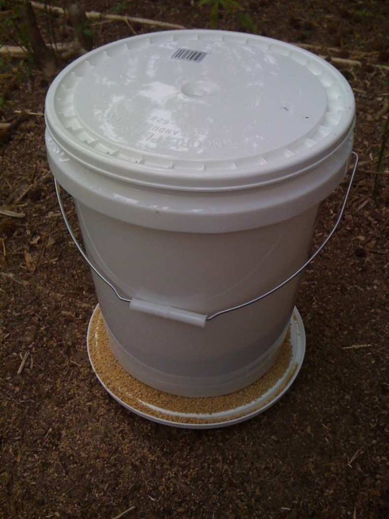 - Насыпьте еду в ведро, сверху закройте крышкой, чтобы в него не попадали осадки и мусор.