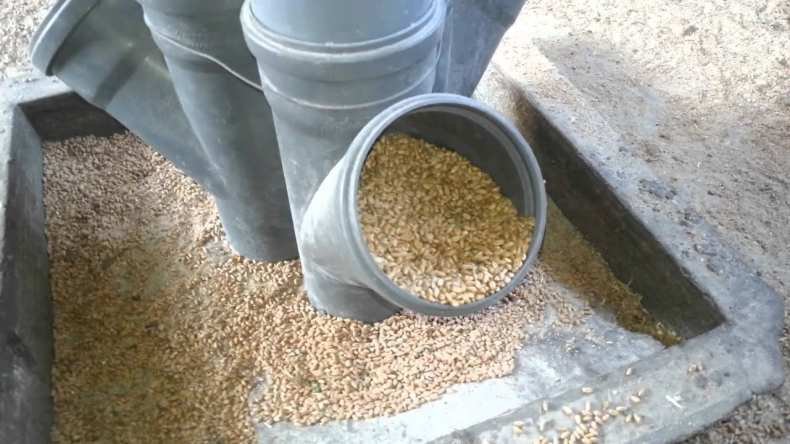 Популярный и распространенный способ подачи сухих видов пищи, например, зерна, комбикорма.