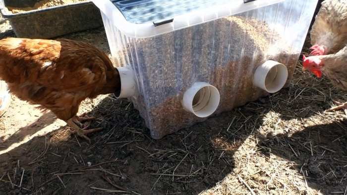 - Многие владельцы птичника озадачиваются смешиванием кормов, поэтому экономнее устанавливать универсальный вариант, подходящий под любую пищу. Можно изготовить несколько ёмкостей для конкретных видов кормов, но большое количество будет занимать полезную площадь.