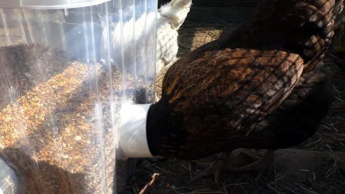 - Простота использования. Корм в конструкцию должен легко насыпаться, курам должно быть удобно пользоваться приспособлением, оно должно очищаться быстро и свободно.
