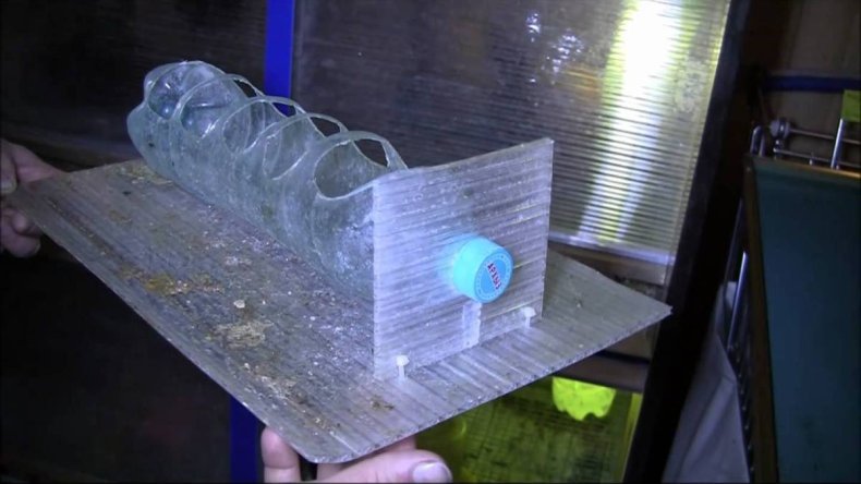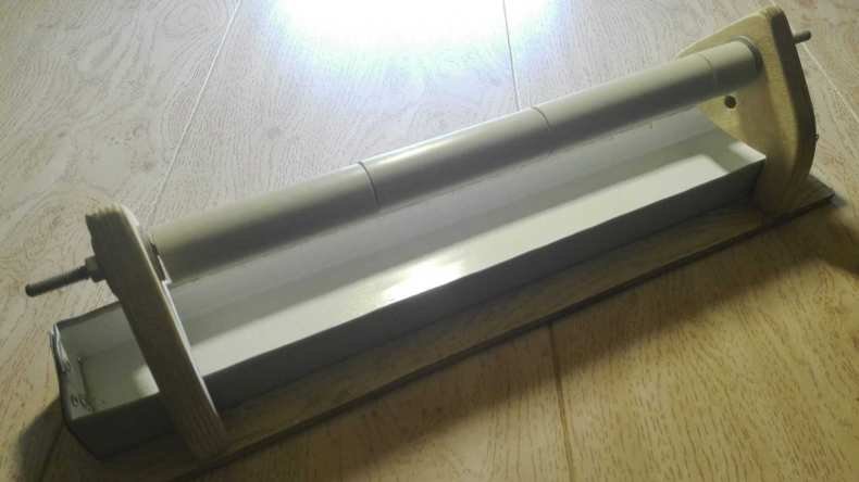 - Уложите трубу из пластика горизонтально. Чтобы пища не высыпалась по краям, следует установить заглушки на торцах.