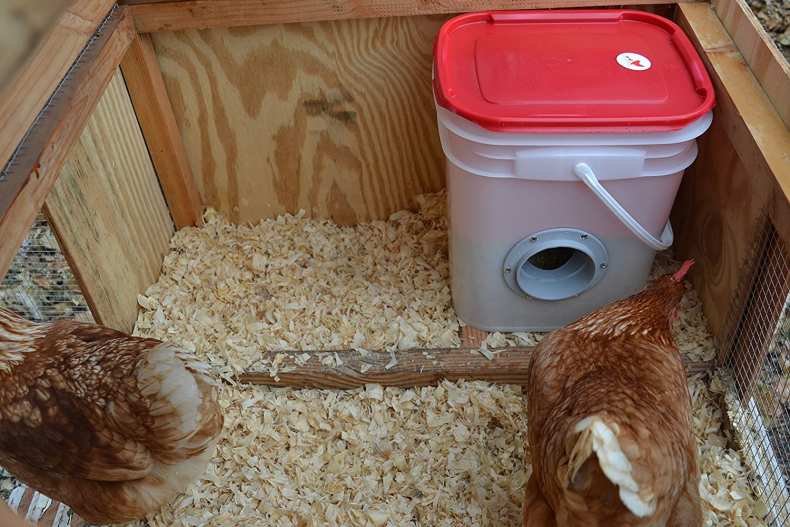 Одним из главных условий к обустройству места приема пищи является его устойчивость. Конструкции, устанавливаемые на полу, в основном достаточно устойчивы, но их доступность позволяет птицам забираться внутрь и непродуктивно разбрасывать корм.