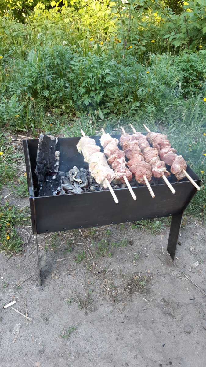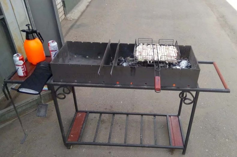 - Продаются мобильные модели, которые легко использовать в разных условиях: на грунте, бетоне, террасе. Можно приготовить шашлык даже на песчаном пляже.