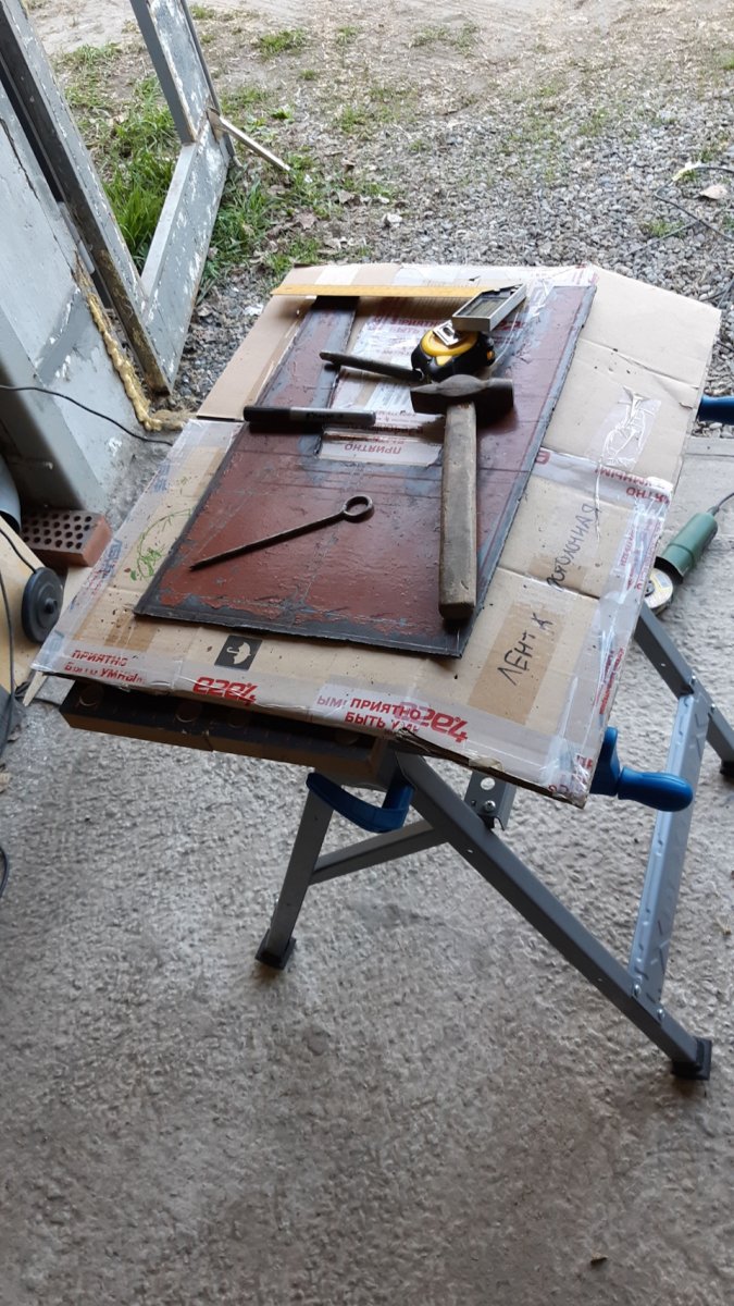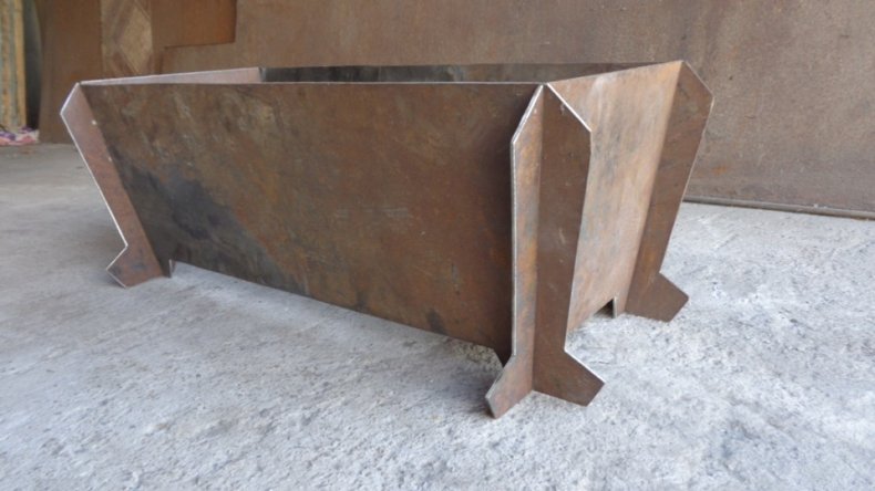 - Болгаркой вырезаем фигуру, сгибаем четыре стороны и свариваем.