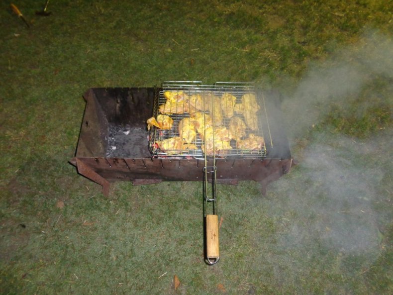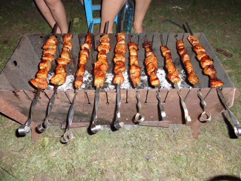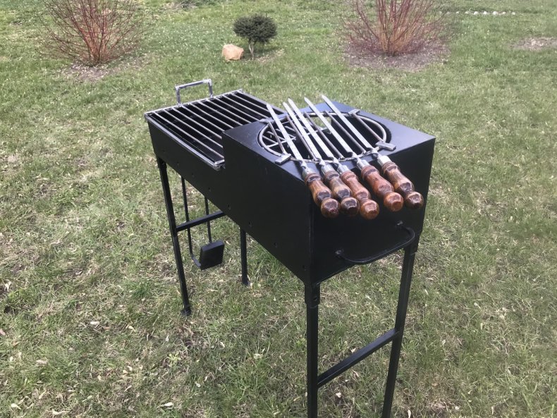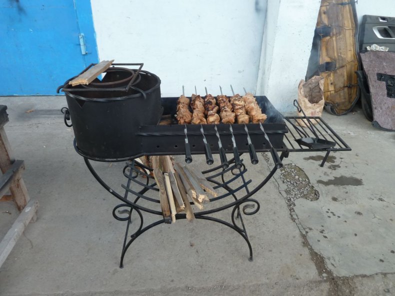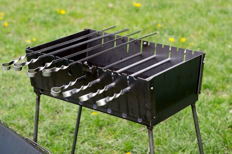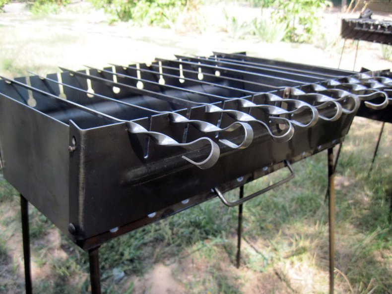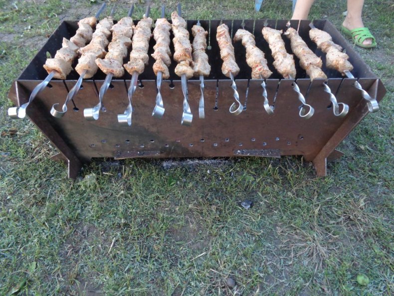 - Так легче разместить шампуры, чтобы они не слетели в сторону.