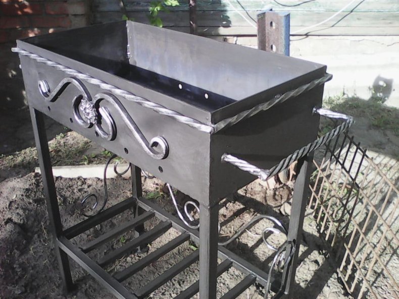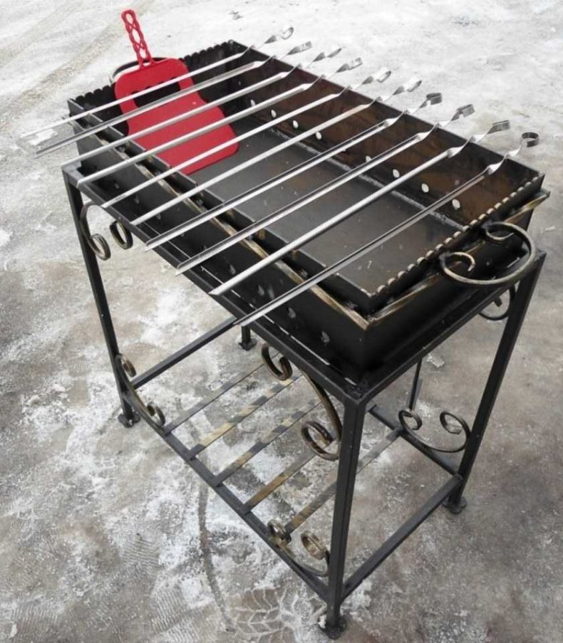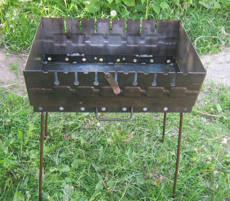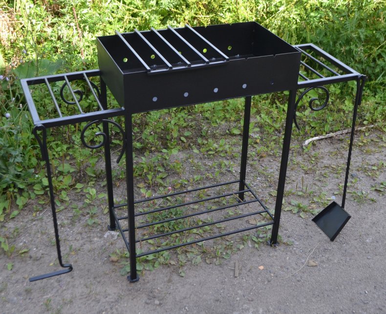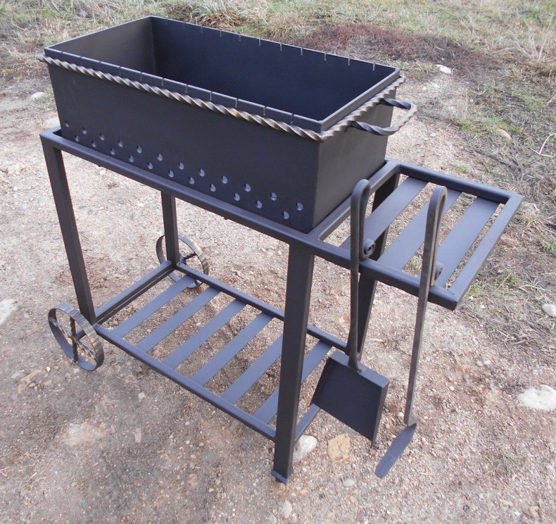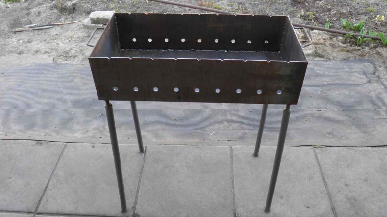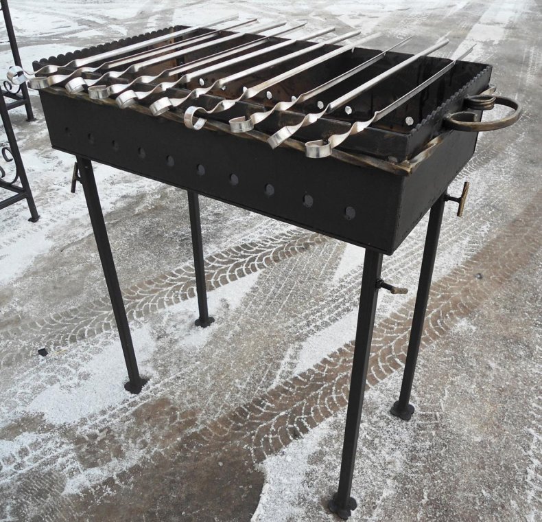 В магазине мангалы продаются в стандартных размерах — от 80 до 120 см. Ножки мангала изготавливают из арматурных прутьев.