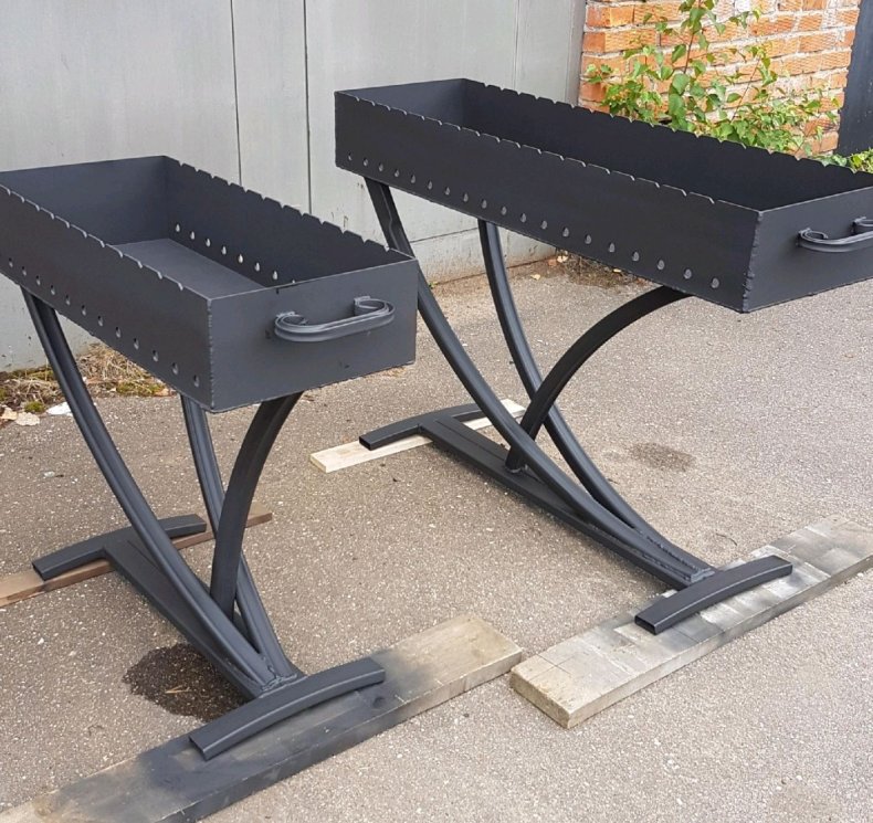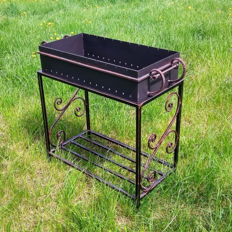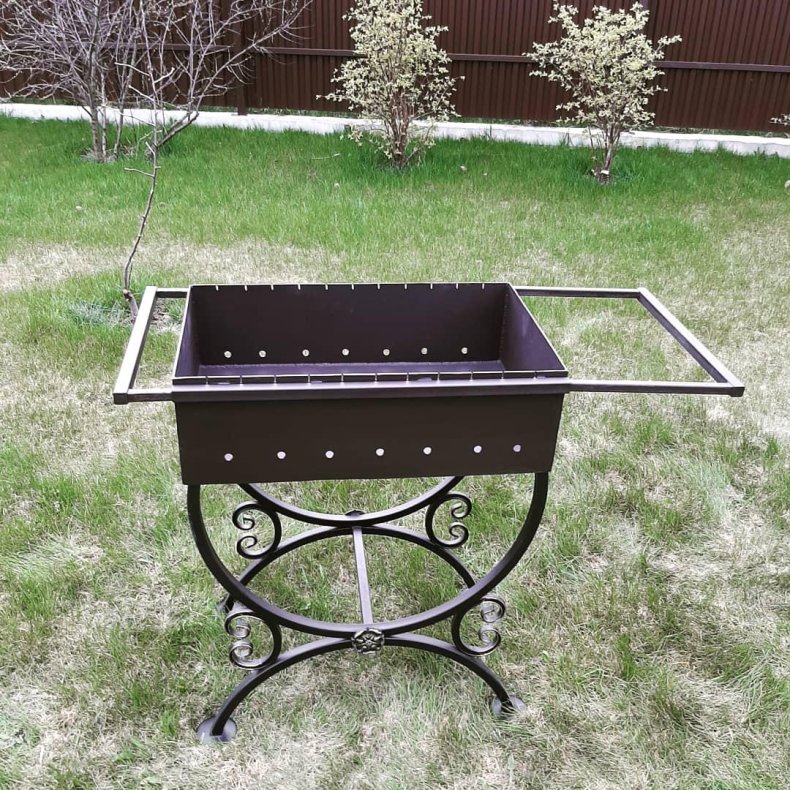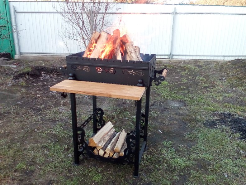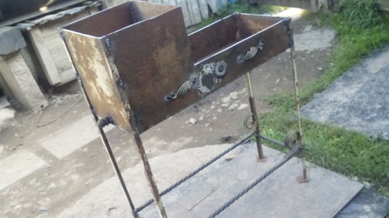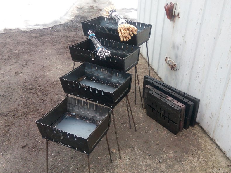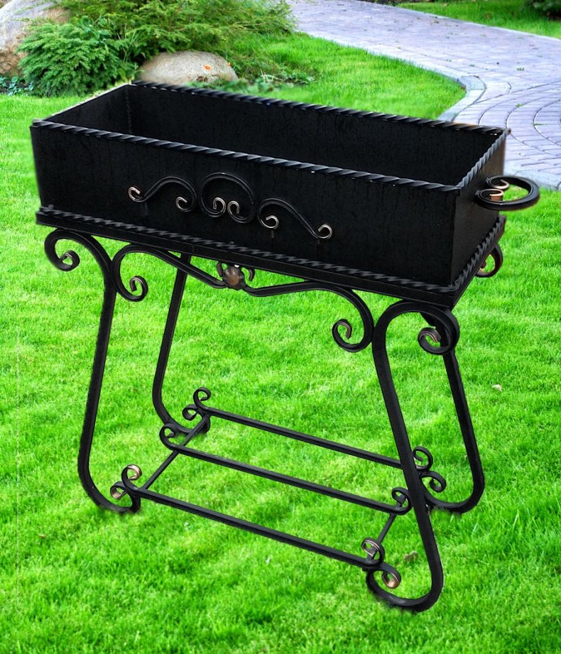 В магазине мангалы продаются в стандартных размерах — от 80 до 120 см. Ножки мангала изготавливают из арматурных прутьев.