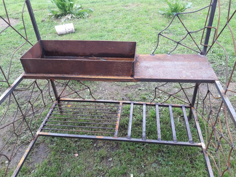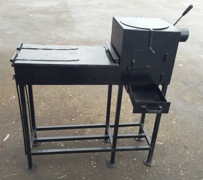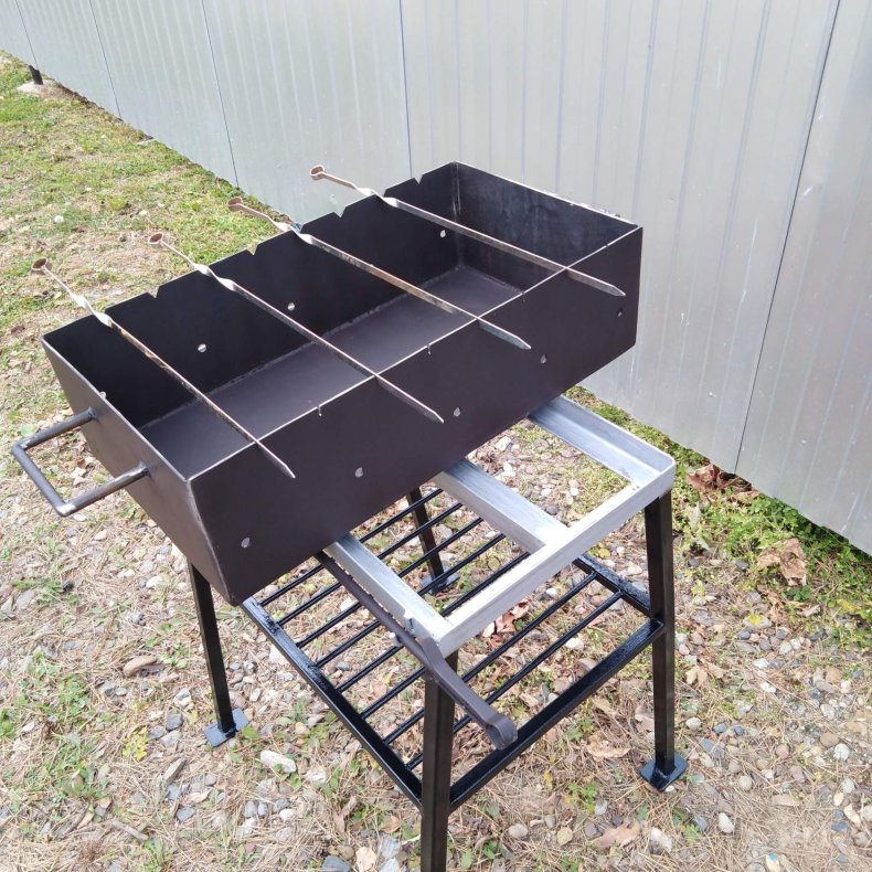 Рассмотрите устройство снизу доверху — увидите 4 заостренных уголка, воткнутые в землю. Это четыре заостренных уголка, которые для удобства можно воткнуть в землю. Их высота определяется в зависимости от потребностей кулинара и обсуждается перед изготовлением.