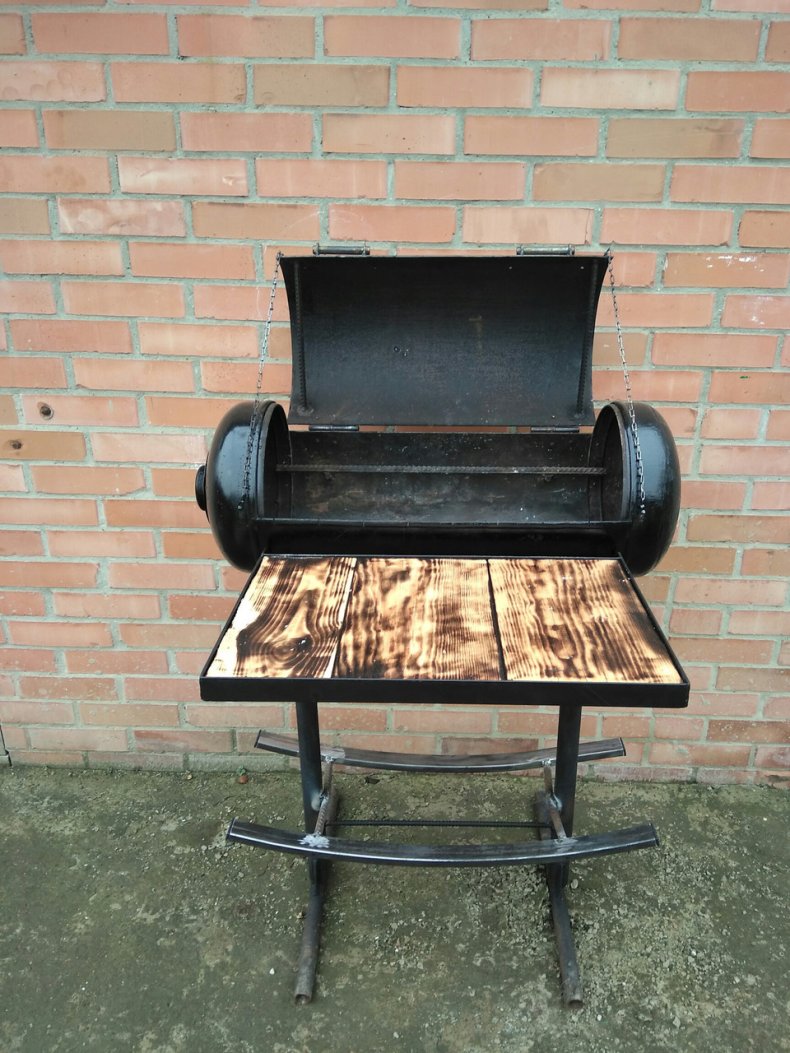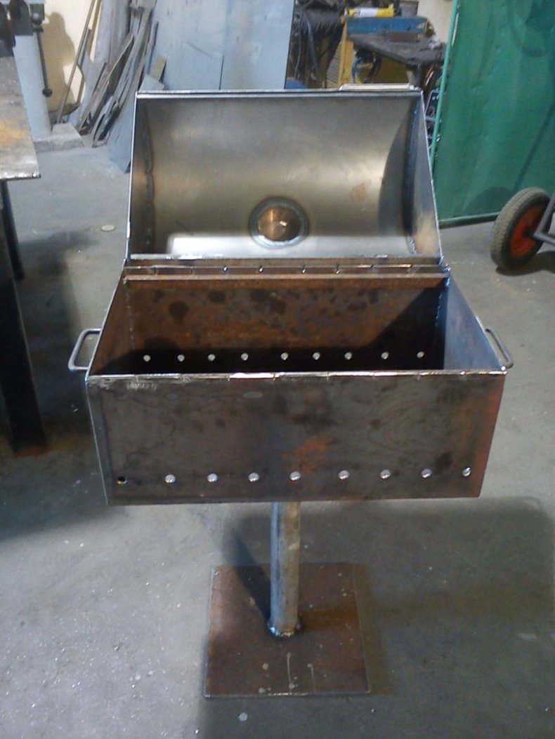 - Стационарная — простая, экономичная и устойчивая конструкция. Используется под навесом или на открытой территории. Дополняется вытяжкой, крышкой, подставкой и двойным дном.