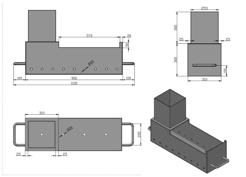 - Короб из четырех сторон и днища является основой конструкции мангала.
