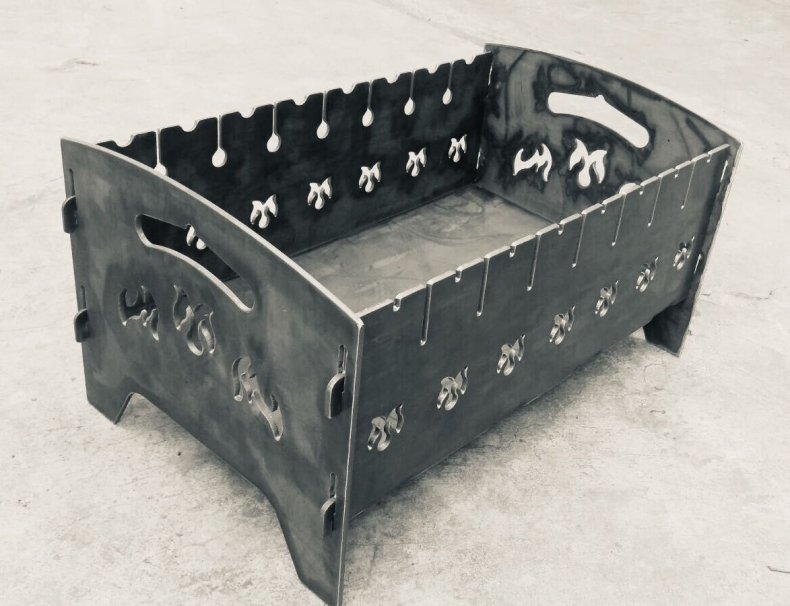 На цельном металлическом листе создаем силуэт мангала. Визуализируем каждую часть в разобранном виде. Своего рода получиться крест.