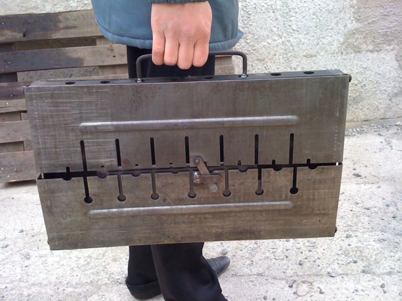 Обратите внимание! Ширина короба должна соответствовать длине шампуры — 30 см. Длина зависит от количества используемых шампур. Кроме этого учитывайте расстояние между изделиями.
