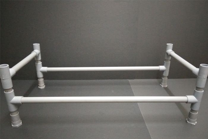 Удобство данной конструкции в том, что стеллаж можно сделать любой высоты и ширины, при необходимости добавляя дополнительные отрезки.