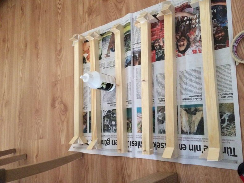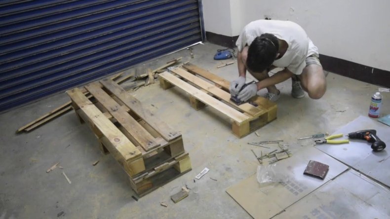 - Обработать поверхность поддонов наждачной бумагой и покрыть защитным лаком. Чтобы изделие имело эстетический вид, следует покрасить его краской нужного оттенка.