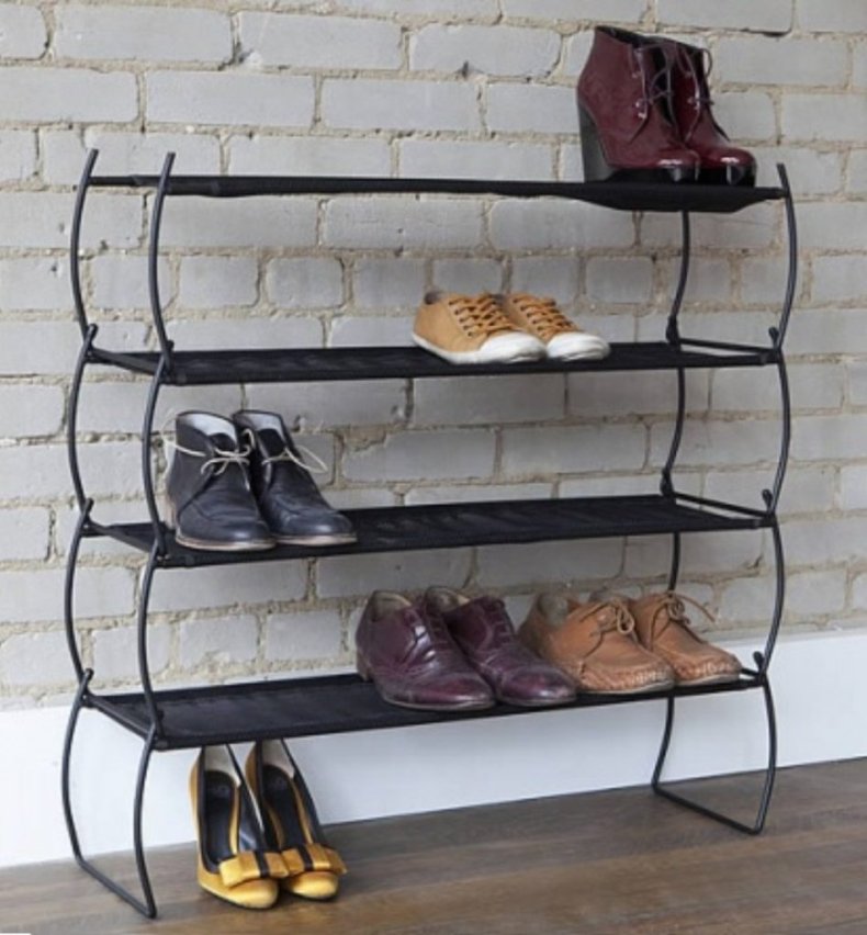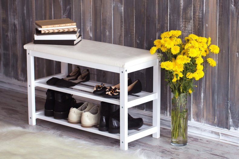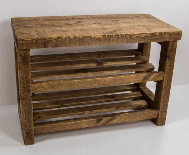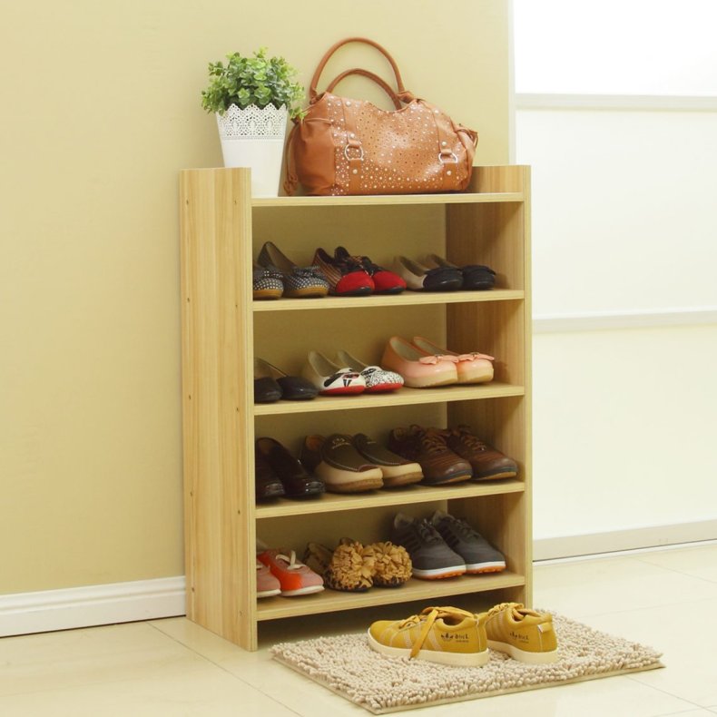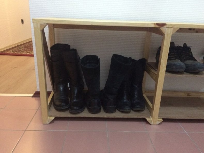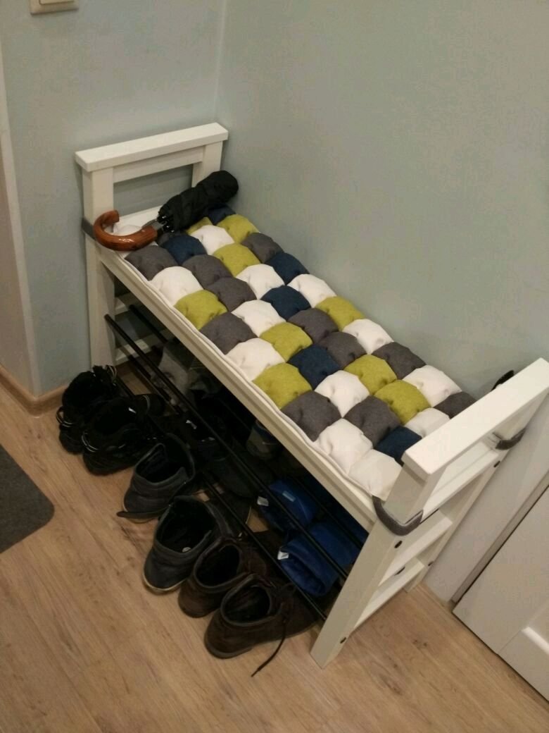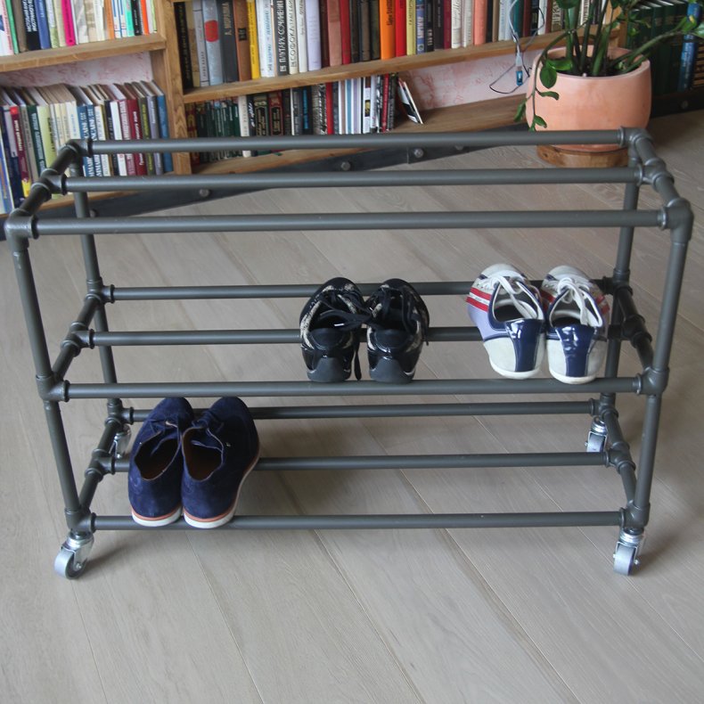 Наименее затратный вариант из всех возможных. К минусам можно отнести то, что конструкция не предназначена для тяжелых ботинок и сапог, а скорее для размещения лёгкой летней обуви, такой как – шлёпанцы, кеды, балетки.