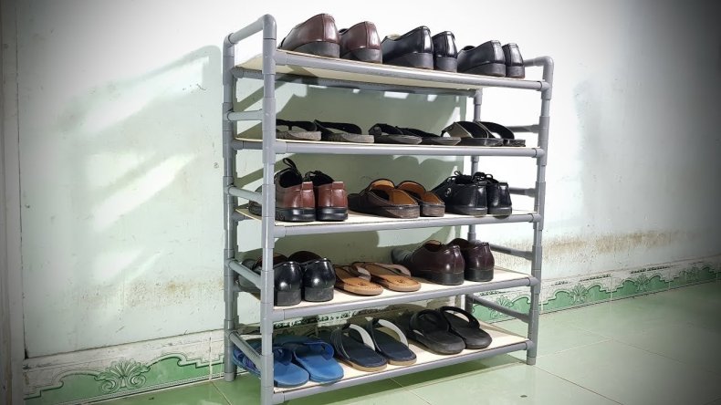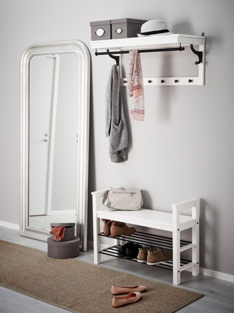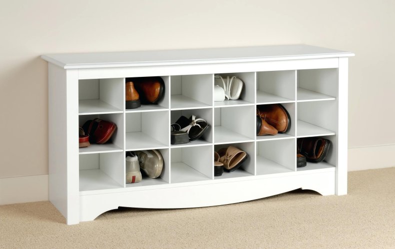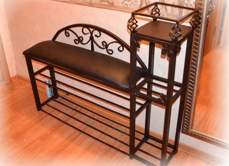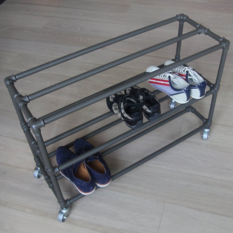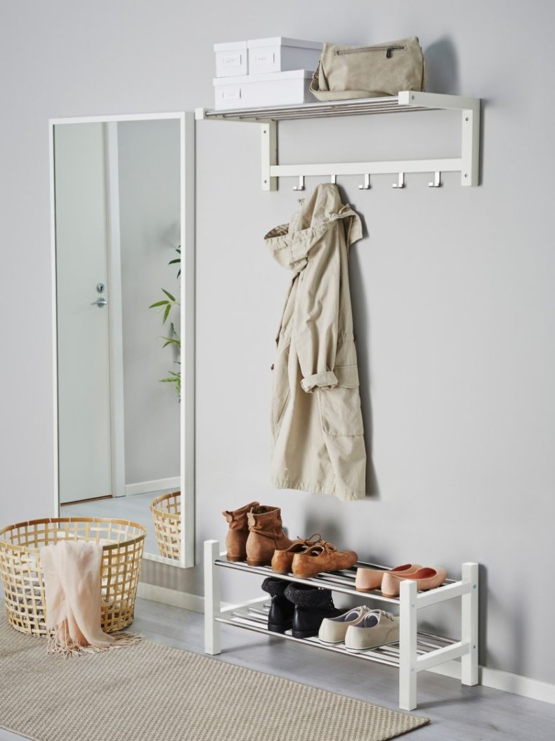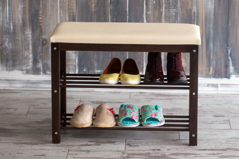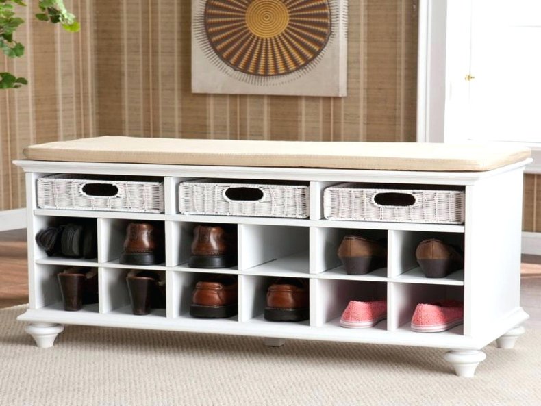 Наименее затратный вариант из всех возможных. К минусам можно отнести то, что конструкция не предназначена для тяжелых ботинок и сапог, а скорее для размещения лёгкой летней обуви, такой как – шлёпанцы, кеды, балетки.