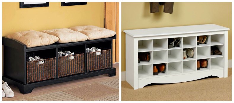 В зависимости от сезона, уличная обувь может быть довольно грязной, и многие предпочитают не убирать её в шкаф, а хранить в открытом доступе. В таком случае обувь всегда на виду и легче определиться, какую пару обуви выбрать.