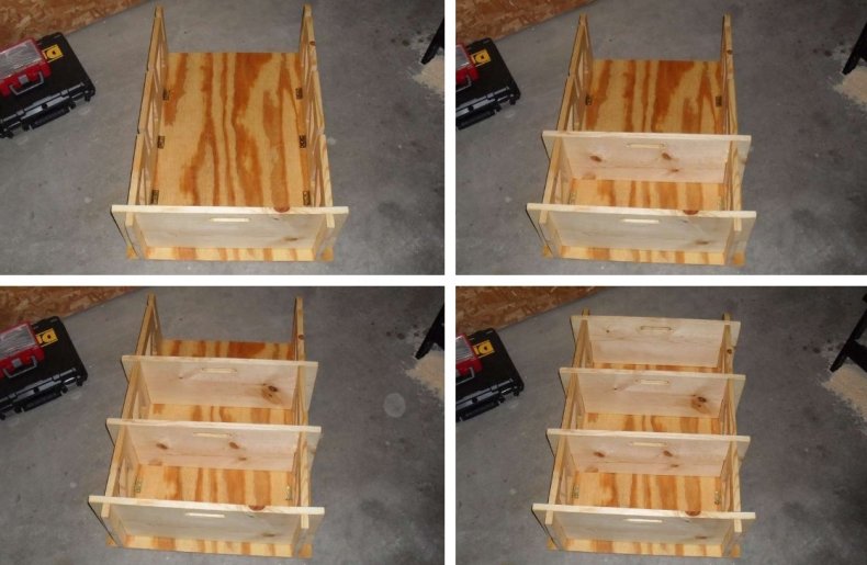 Отличный вариант для загородного дома или дачи. Ящики лучше выбирать из тонкой фанеры.