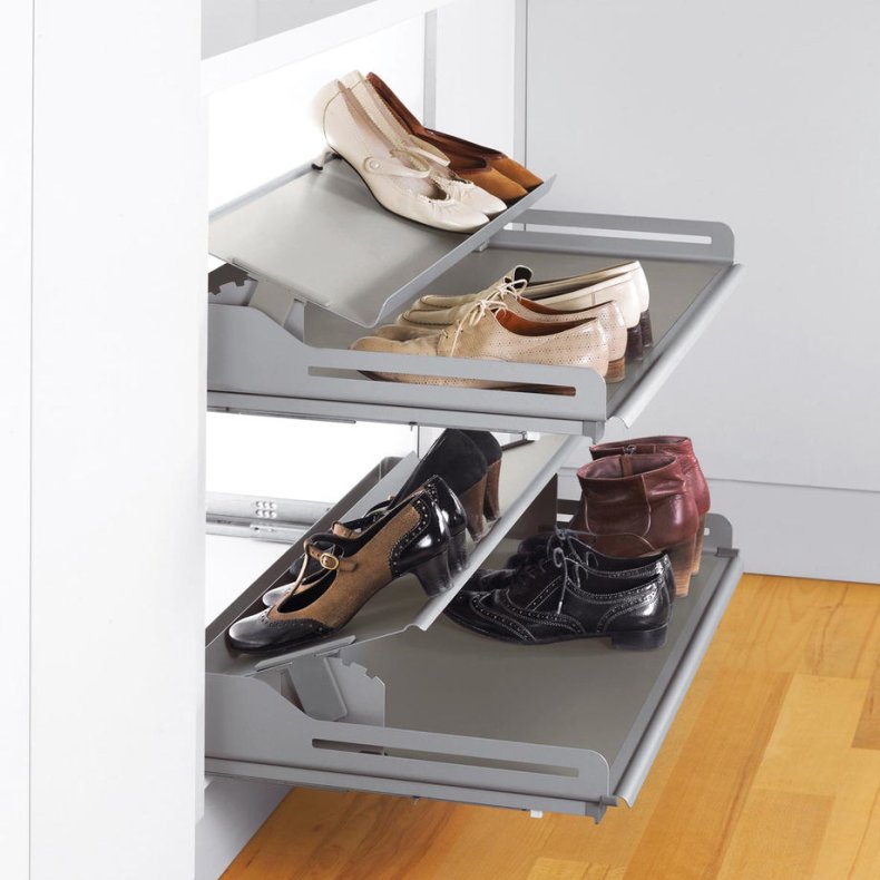 - Можно добавить внутренние перегородки в ящиках для размещения большего количества обуви.