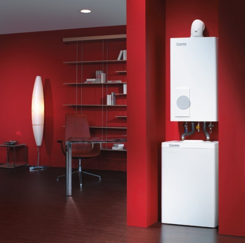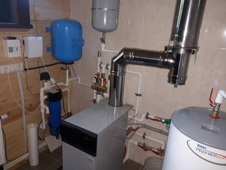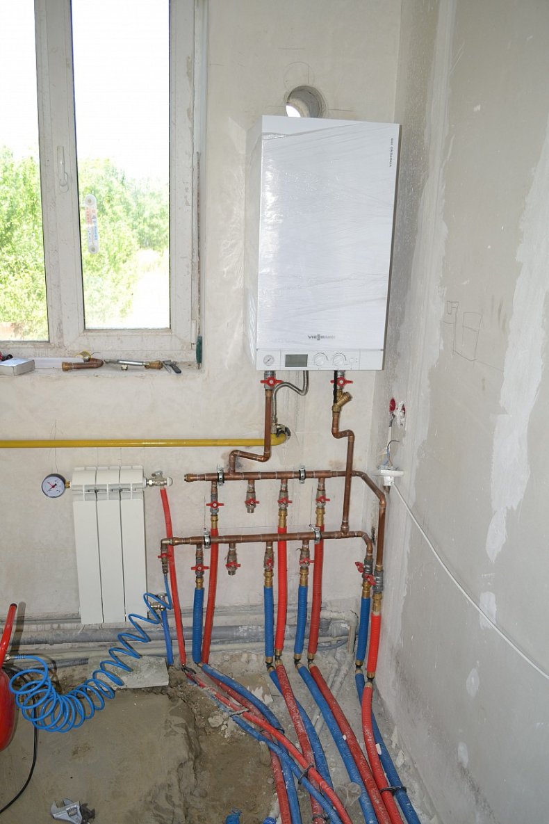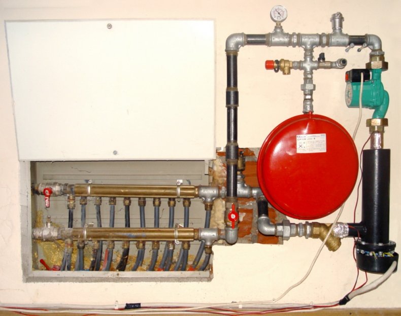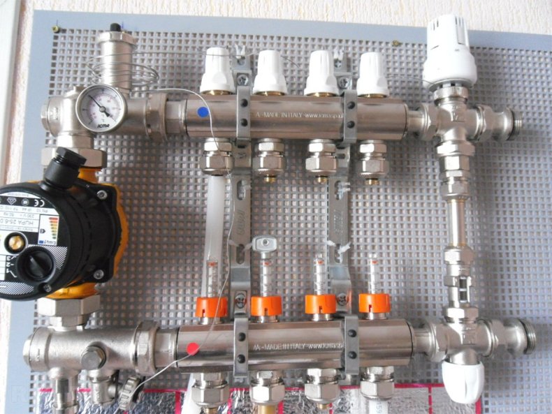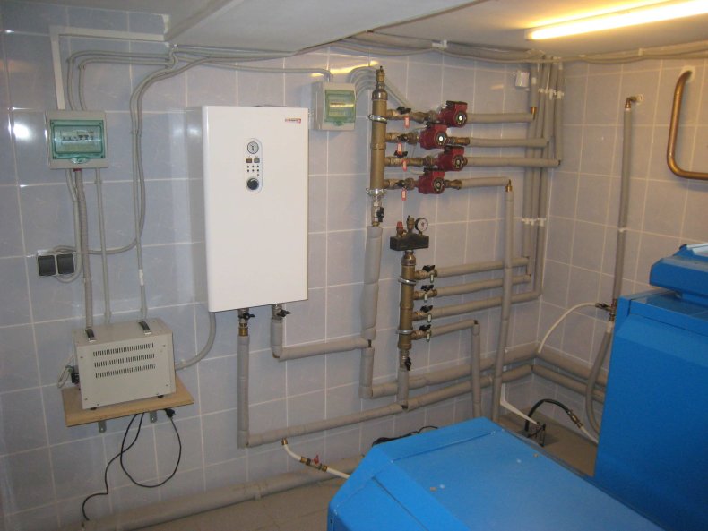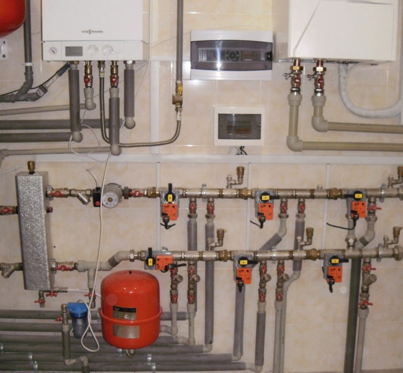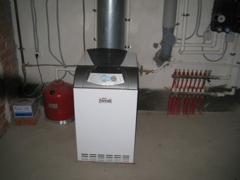 - Установка нагревательного котла. Мощность теплых полов во всех помещениях складывают с запасом (15 % от общего показателя). Полученный результат становится главным ориентиром при покупке оборудования. В комплект помимо котла включают насос. Если одного недостаточно, приобретают дополнительный.