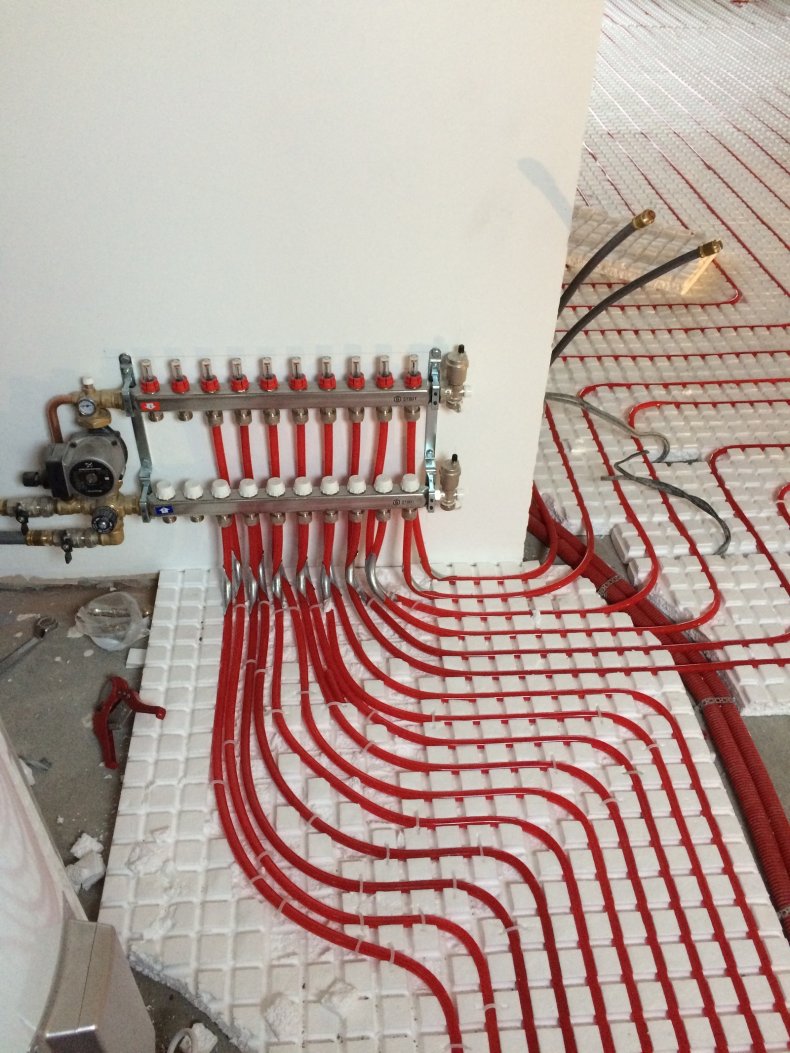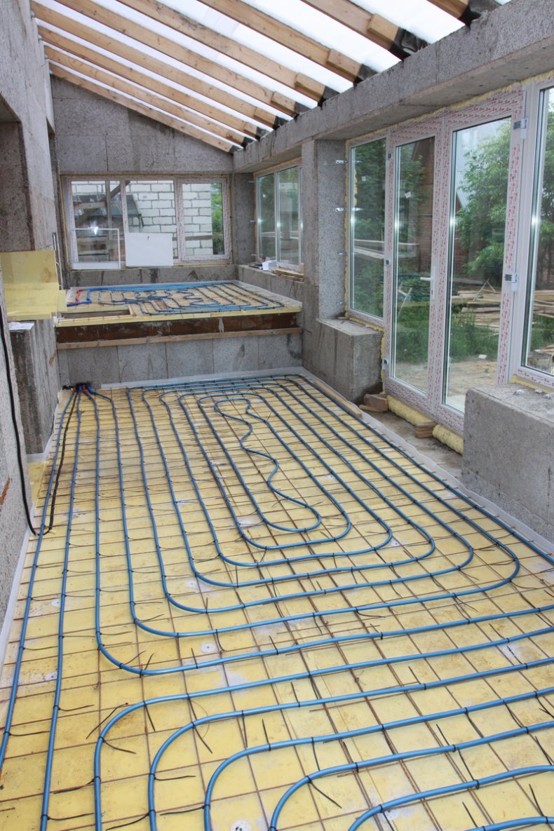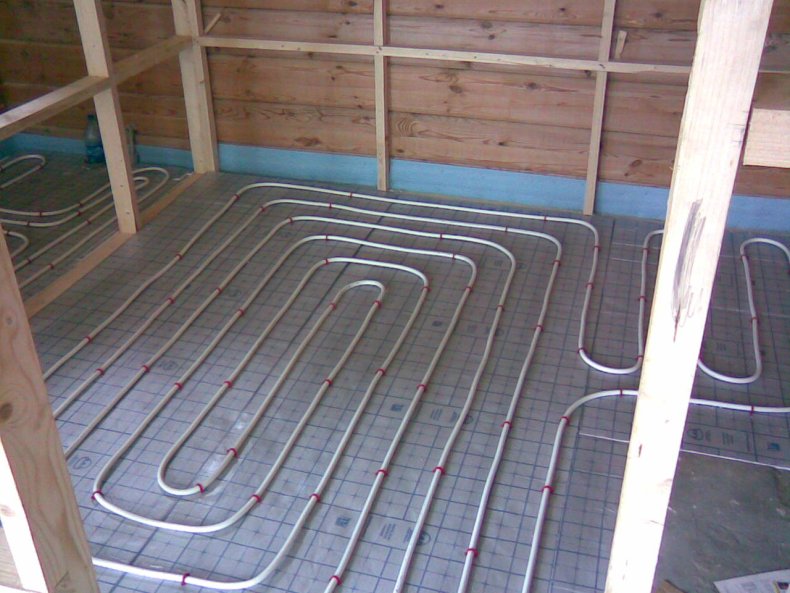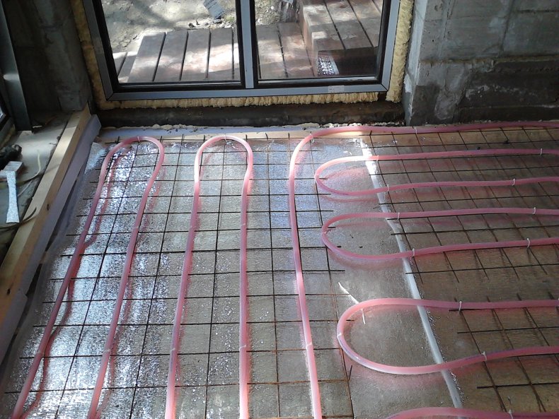 Трубы прокладывают, следуя рекомендациям. Вода, проходя по трубам, медленно остывает, поэтому система должна брать начало от наружных стен. Они прогреются, если теплоноситель будет достаточно горячим.