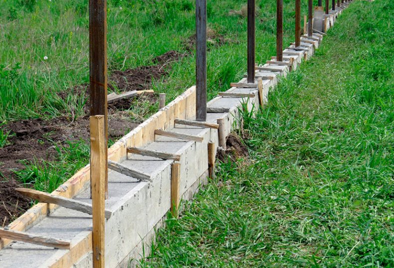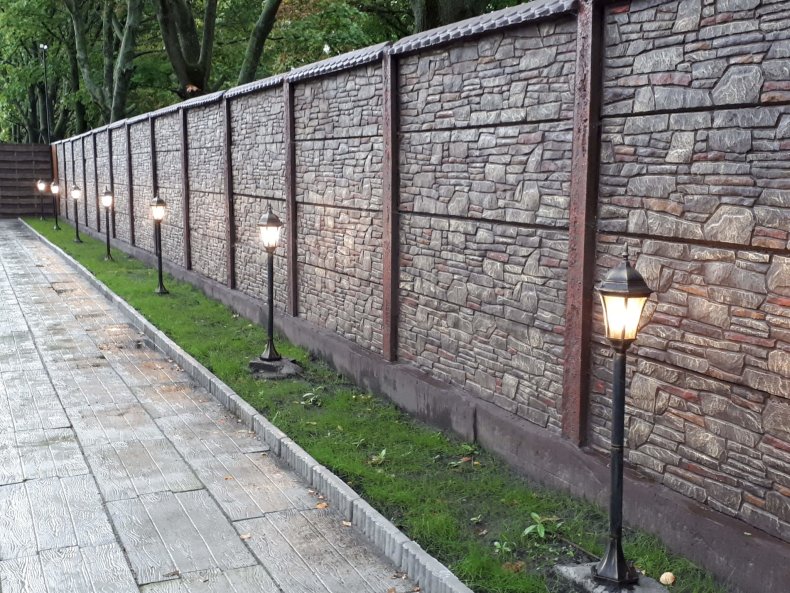 Одним из наиболее долговечных и красивых ограждений считается бетонная конструкция. Нужно быть готовым к тому, что его монтаж требует отдачи немало времени и сил, а также стоит не дёшево.