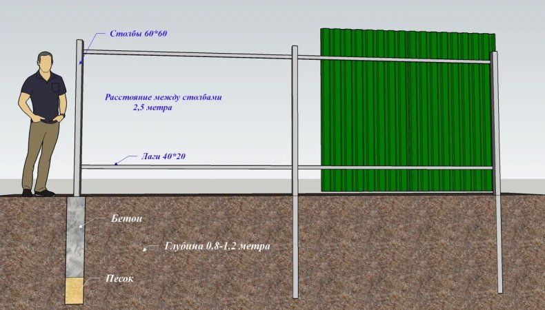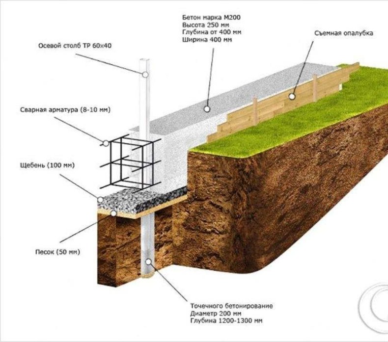 - Копается траншея по ширине забора +10 см. Глубиной 40-50 см.