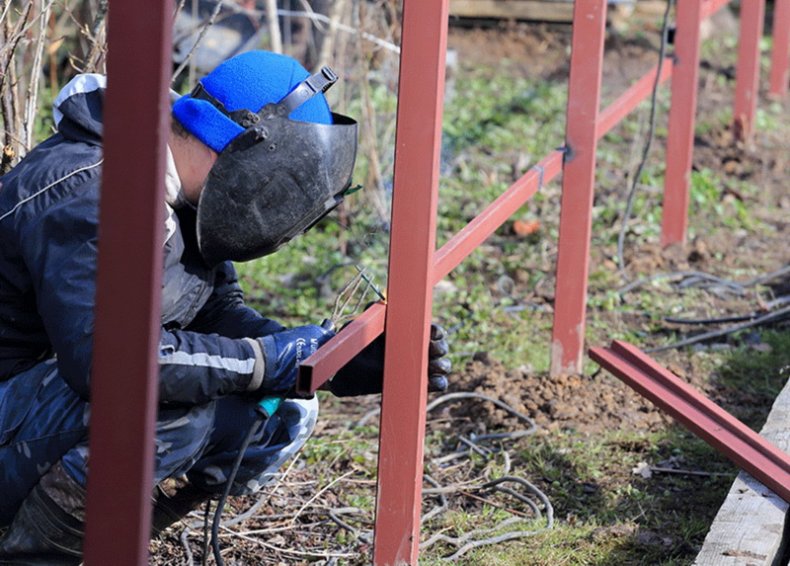 Советуется расположить опоры так, чтобы конец рулона заканчивался на одном из них, тогда шов не испортит общий вид. Между собой они с лёгкостью закрепляются с помощью вязальной проволоки.