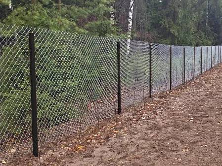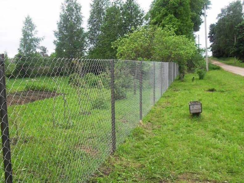 Можно взять привычную сетку рабицу из стали с оцинкованным или ПВХ покрытием. Сечение не должно быть менее 1,8 мм. Тоньше этого и дешёвый, приобретать не советуется.
