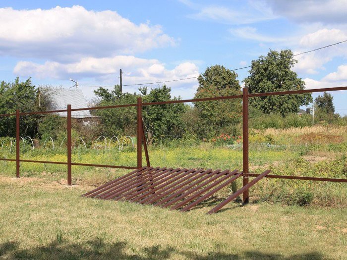 - Такая ограда будет не самая эстетичная, но её можно дёшево, быстро и просто установить.
